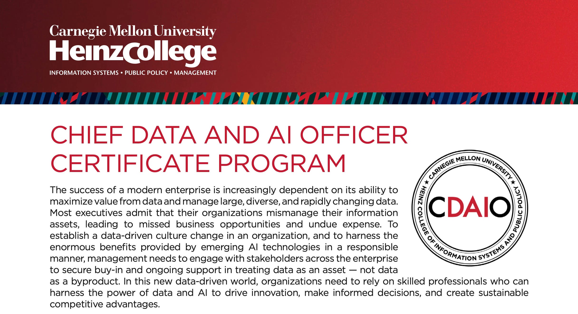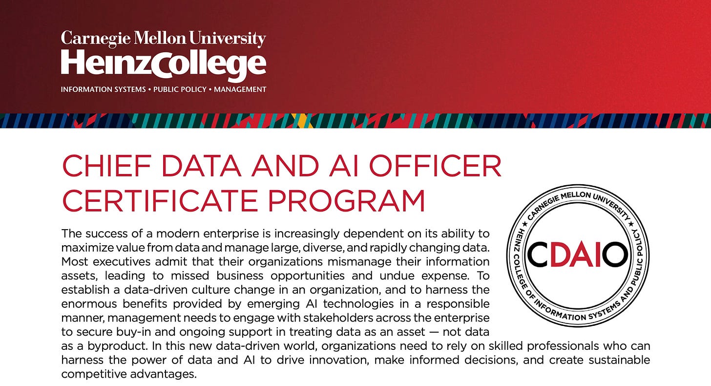 I am excited to announce that I will be engaging with the prestigious Carnegie Mellon University’s Chief Data and AI Officer (CDAIO) program to deepen this work and formalize the operating models required to govern data and AI at enterprise scale. 🎩 🚀